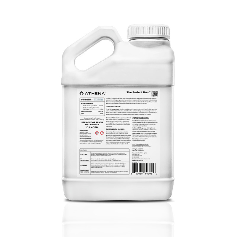 ה - Athena Perafoam זה חומר נוזלי ריכוז בעל הקצפה גבוהה במיוחד שמעוצב לשימוש בשילוב עם ה - Athena Reset לחיטוי ולחיסול חיידקים מכל משטח וכלי כעבודה. ה - Athena Perafoam עמיד במי ברז ויציב לחומרי חמצון. ההקצפה ארוכת המשך שלו מאפשרת הדבקות מקסימלית על הציוד והמשטחים מאשר שיטות מסורתיות. מוביל לחיטוי מעולה ולכוח של Athena Reset. אין צורך בשטיפה אם משתמשים בשיעורי המנה המומלצים.